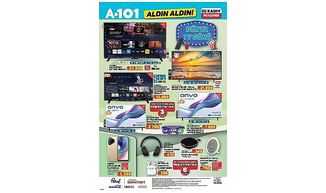 Türkiye’nin 81 ilinde ve tüm ilçelerinde 13.500’ü aşkın marketiyle hizmet veren, 1.200’den fazla tedarikçisiyle perakende sektörünün öncü markalarından A101, 20 Kasım Perşembe günü teknolojik ürünlerini avantajlı fiyatlarla tüketiciyle buluşturacak. Tiny House, Karavan ve Kamp Isıtıcıları Bu Hafta A101’de ESCAMP 6500 Flat Tiny House 385.000 TL, ERBA Karavan 4.00 Çekme Karavan 299.000 TL, SENSATION Taşınabilir Dizel Isıtıcı 5 KW 6.799 TL ve SENSATION Sabit Dizel Isıtıcı 5 KW 5.799 TL fiyatlarıyla satışta olacak. Motosiklet, Moped ve Araç Ekipmanları Tüketiciyle Buluşuyor APEC APX7 200 CC Benzinli Motosiklet 99.990 TL, VOLTA VS2 Elektrikli Moped 29.990 TL, VOLTA VM5 Neo Üç Tekerlekli Moped 74.990 TL, AZDOME M200 Araç Kamerası 1.299 TL, PIRANHA Mini Kompresör 799 TL, PIRANHA Dijital Hava Kompresörü 749 TL ve PIRANHA Akü Takviye Cihazı 1.990 TL fiyatlarıyla A101 mağazalarında yer alıyor. Yeni Nesil Görüntü Deneyimi Sunan Akıllı Televizyonlar TOSHIBA 65UV2363DT 65” UHD Vidaa TV 24.999 TL, TOSHIBA 50UV2363DT–50UV1563DT 50” 4K UHD Vidaa TV 15.999 TL, GRUNDIG 55 GJU 7100 55” Smart 4K UHD Google TV 21.999 TL, ONVO 32VL80F2HA 32” Frameless HD Whale OS 10 Android LED TV 6.299 TL ve ONVO 40VQ80F2FA 40” Frameless FHD Whale OS 10 Android QLED TV 7.999 TL fiyatlarıyla tüketicilerin beğenisine sunuluyor. Telefon ve Telefon Aksesuarlarında Uygun Fiyatlı Alternatifler HIKING A49 4/128 GB Cep Telefonu 5.299 TL, GO SMART GS-BT-20 Bluetooth Kafaüstü Kulaklık 439 TL, GO SMART GS-TWS-25 Bluetooth Kulakiçi Kulaklık 299 TL, GO SMART GS-BTS-32 Bluetooth Hoparlör 349 TL ve TRAX Mobil M24304 4’ü 1 Arada Kablosuz Bluetooth Hoparlör 799 TL fiyatlarıyla satışta. Beyaz Eşyalarda Öne Çıkan Fırsatlar SEG LF 2831 Buzdolabı 11.999 TL, SEG CFW 4631 Buzdolabı 19.999 TL, SEG CM 10121 INV 10 KG Çamaşır Makinesi 14.999 TL ve SEG STF 65 Mekanik Silindirik Termosifon 65 L 6.999 TL fiyatlarıyla alıcıların ilgisine sunuluyor. Küçük Ev Aletlerinde Kullanışlı Ürünler SINBO SMX-2769 Stantlı Mikser 2.999 TL, SINBO SK-8029 Cam Kettle 699 TL, KIWI KCM 7510 Elektrikli Cezve 289 TL, ONVO OVTM01 Dijital Çay Makinesi 1.799 TL, SAMSUNG VC07R302MVB/TR Cyclone Süpürge 4.799 TL ve ONVO OVHYM100 Halı ve Koltuk Yıkama Makinesi 3.799 TL fiyatlarıyla alıcı buluyor. Günlük Kullanıma Uygun Masaj Aletleri ve Kişisel Bakım Ürünleri PIERRE CARDIN 5 in 1 Saç Şekillendirici Set 1.599 TL, ONVO OVHC02 Saç Kurutma Makinesi 1.499 TL, APRILLA AHC-5051 Profesyonel Şarjlı Saç Sakal Kesme Makinesi 849 TL, PIERRE CARDIN Erkek Bakım Seti 999 TL, PIERRE CARDIN Akıllı Vücut Analiz Baskülü 599 TL, PIERRE CARDIN Boyun ve Sırt Masaj Aleti 1.199 TL ve PIERRE CARDIN 4 Başlıklı Masaj Aleti 799 TL fiyatlarıyla dikkat çekiyor. A101’den Müzikseverlerin Yüzünü Güldürecek Ürünler JWIN SDP-92 88 Tuşlu Dijital Piyano 10.899 TL ve JWIN JDD-507T Tabureli Dijital Bateri Seti 7.299 TL fiyatlarıyla müzikseverlerle buluşuyor. ESCAMP 6500 Flat Tiny House, ERBA KARAVAN 4.00 Çekme Karavan, SENSATION Taşınabilir Dizel Isıtıcı 5 KW, SENSATION Sabit Dizel Isıtıcı 5 KW, VOLTA VS2 Elektrikli Moped, TOSHIBA 50UV2363DT–50UV1563DT 50” 4K UHD Vidaa TV, GRUNDIG 55 GJU 7100 55” Smart 4K UHD Google TV, SEG LF 2831 Buzdolabı ve SEG CM 10121 INV 10 KG Çamaşır Makinesi mağazalara ek olarak a101.com.tr üzerinden de satışa sunulacaktır.   Kaynak: (BYZHA) Beyaz Haber Ajansı