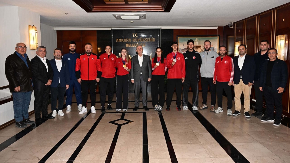 Şampiyon sporcular Esenboğa Havalimanı’nda mehteran takımı eşliğinde coşkulu bir törenle karşılandı. Törenin ardından sporcular, Ankara Büyükşehir Belediye Başkanı Mansur Yavaş’ı ziyaret etti. Sporcuları tek tek kutlayarak sohbet eden Mansur Yavaş, “Tebrik ediyorum. Başarılarınızın devamını diliyorum. İnşallah daha nice madalyalar alıp ülkemizi gururlandıracaksınız. Bizler de sizlerle gurur duyacağız. En iyi şartlarda nasıl çalışabilirsiniz onun imkânlarını artırmaya çalışıyoruz” dedi.