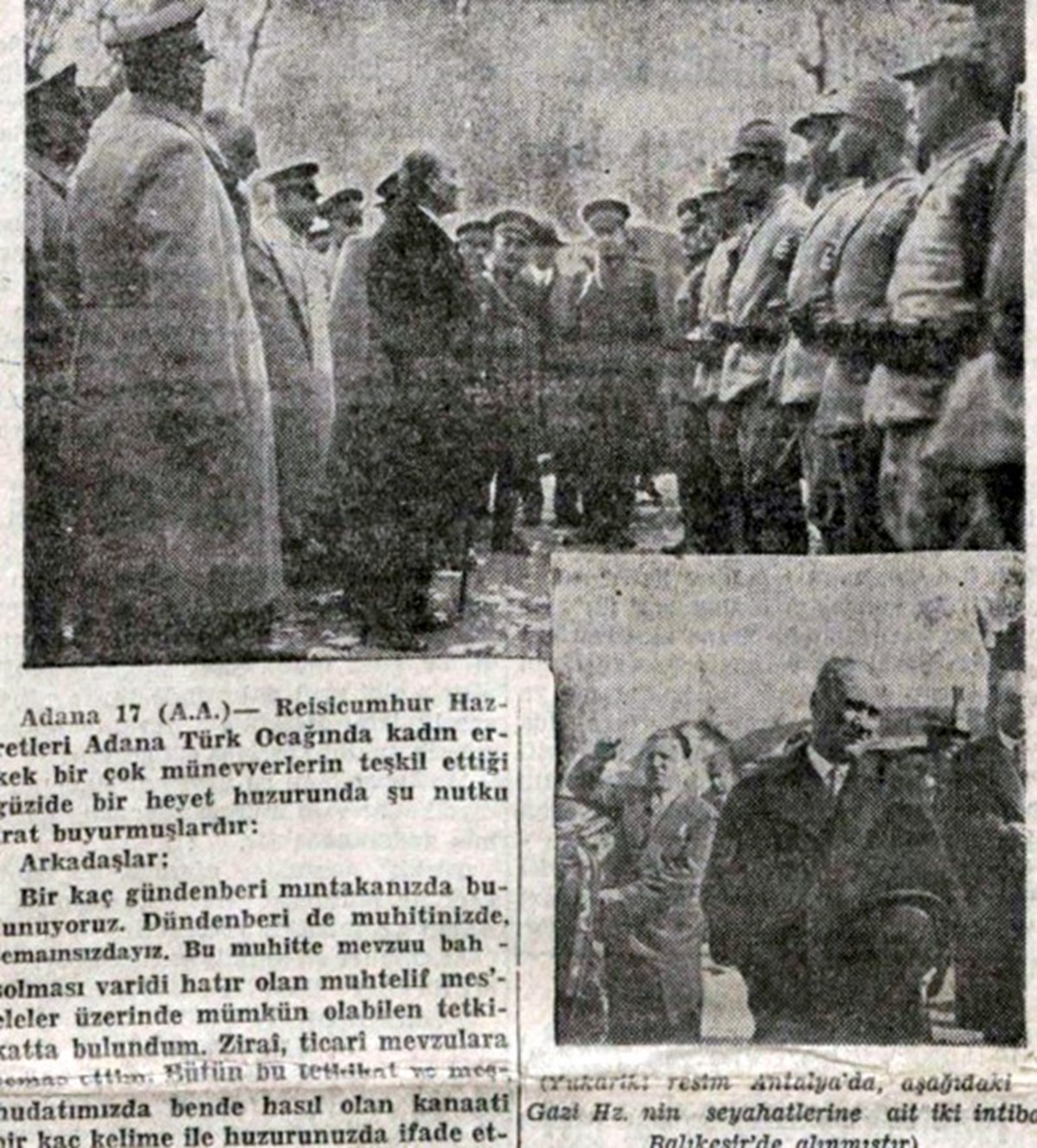 Türkiye Cumhuriyeti'nin kurucusu Mustafa Kemal Atatürk'ün 3 kez ziyaret ettiği Antalya'yı 2'nci ziyaretine ilişkin yeni görüntüler ortaya çıktı. Fotoğrafı 1931 tarihli gazetelerde yayımlanan videoda, Başkomutan Atatürk Antalya'da Mehmetçik'i selamlıyor. Görüntü, Türk Silahlı Kuvvetleri (TSK) tarafından Atatürk'ün ebediyete irtihalinin yıl dönümü dolayısıyla hazırlanan videoda 8 saniye olarak yer aldı. Atatürk'ün Antalya'ya 2'nci ziyaretinin 94'üncü yıl dönümündeki yeni görüntü, 10 Şubat 1931 gününe ait ve TSK arşivinde daha uzun süresi olabileceği de tahmin ediliyor.