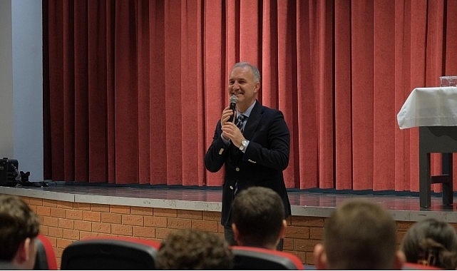 Başkan Taban öğrencilerle okulun çok amaçlı salonunda buluştu. Programda öğrencilerle birlikte okul idarecileri ve öğretmenler de yer aldı. Öğrencilerle yapılan buluşmada kısa bir selamlama konuşması yapan Okul Müdürü Mesut Mutlu, ziyareti ve öğrencilere verdiği değer için Başkan Alper Taban’a teşekkür etti. Başkan Alper Taban ise geçtiğimiz yıl Genç Bakış Buluşmalarını başlattıklarını hatırlatarak “Bu yıl da yine okullarımızın özellikle son sınıf öğrencileriyle buluşmalarımızı sürdürüyoruz. Bizlere kapılarını açan idarecilerimize teşekkür ediyorum. Bu buluşmaları biz neden yapıyoruz? Öğrencilerimiz, öğretmenlerimiz ve okul idarecilerimizi dinlemek için gerçekleştiriyoruz. Yaptığımız iş gereği bizim karşımızdaki kitleyi anlamamız, kitleyle iletişimimizi iyi kurmamız gerekiyor. Sizlerin beklenti ve isteklerinizi anlayıp, ona göre hizmet üretmek durumundayız. Bunu anlamak için de bu buluşmalar bizim için çok kıymetli. Burada amacımız konuşmak değil, sizleri dinlemek. Amacımız birlikte ve katılımcı yönetim anlayışını ortaya koymak. Burada her türlü soruyu bana yöneltebilirsiniz” dedi.