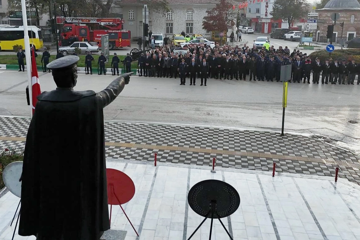 Bursa'nın Yenişehi ilçesinde saat 9’u 5 geçe sirenlerin çalmasıyla adeta zaman durdu. Gazi Mustafa Kemal Atatürk, ebediyete irtihalinin 87’nci yılında Heykel Meydanı’nda anıldı.
