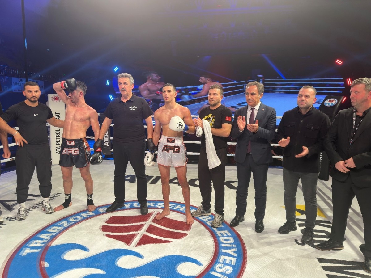 Trabzon Büyükşehir Belediyesi ev sahipliğinde, Trabzon Gençlik ve Spor İl Müdürlüğü ile Türkiye Muaythai Federasyonu iş birliğinde efsane antrenör Mustafa Durmuşoğlu anısına düzenlenen “Attack Muaythai” organizasyonu, büyük heyecana sahne oldu. Beşirli Kapalı Spor Salonu’nda gerçekleştirilen organizasyona Trabzon Vali Yardımcısı Fatih Kızıltoprak, Trabzon Gençlik ve Spor İl Müdürü Lokman Arıcıoğlu, Büyükşehir Belediyesi Gençlik ve Spor Hizmetleri Dairesi Başkanı Özgür Kara, Ortahisar Gençlik ve Spor İlçe Müdürü Yunus Ali Civil, önceki dönem Trabzon Milletvekili Hüseyin Örs, Muaythai Türkiye Federasyonu Başkan Vekili Korkmaz Atalay, Türkiye Muaythai Federasyonu Şube Başkanı Hakan Şahade, Muaythai Trabzon İl Temsilcisi Gökhan Bektaş, Trabzon Amatör Spor Kulüpleri Federasyonu Başkanı Zeki Kurt, merhum antrenör Mustafa Durmuşoğlu’nun ailesi, spor camiasının önde gelen isimleri ve çok sayıda sporsever katıldı. Gecede farklı yaş ve sıklet kategorilerinde gerçekleştirilen müsabakalar, izleyenlere adeta nefes kesen anlar yaşattı.
