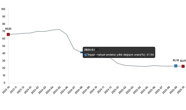 İnşaat maliyet endeksi yıllık değişim oranı(%), Ekim 2025