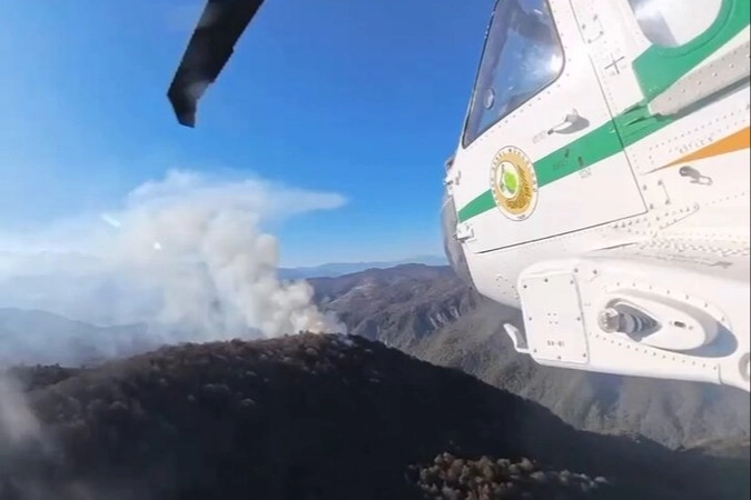 Bakanlığın paylaşımına göre, Orman Genel Müdürlüğü envanterinde bulunan 2 yangın söndürme uçağı ve 1 su atar helikopter, yangınla mücadele çalışmalarına sahada katıldı.