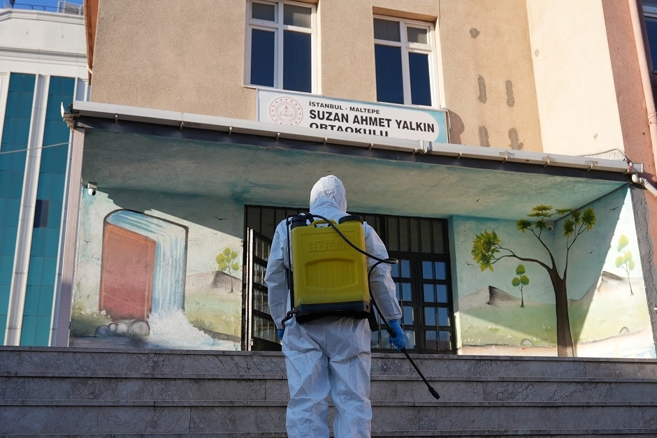 İstanbul'da Maltepe Belediyesi, ara tatil döneminde ilçedeki okullarda hijyen ve dezenfeksiyon çalışmalarına hız kesmeden devam ediyor.