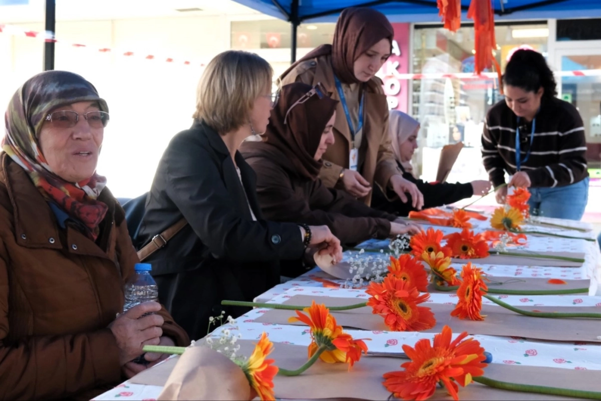 Atölyeye katılan kadınlar kendileri için, gençler anneleri ve sevgilileri için, erkekler ise eşleri için uzman ekip eşliğinde çiçek buketi hazırladı. Yapılan farkındalık etkinliği kapsamında kadına yönelik şiddetin karşısında dayanışma çiçekleri “şiddetsiz bir dünya” temasıyla anlamlandırıldı. Etkinlik kapsamında kadına yönelik şiddete ‘dur’ mesajı ise turuncu kurdeleler ile verildi.