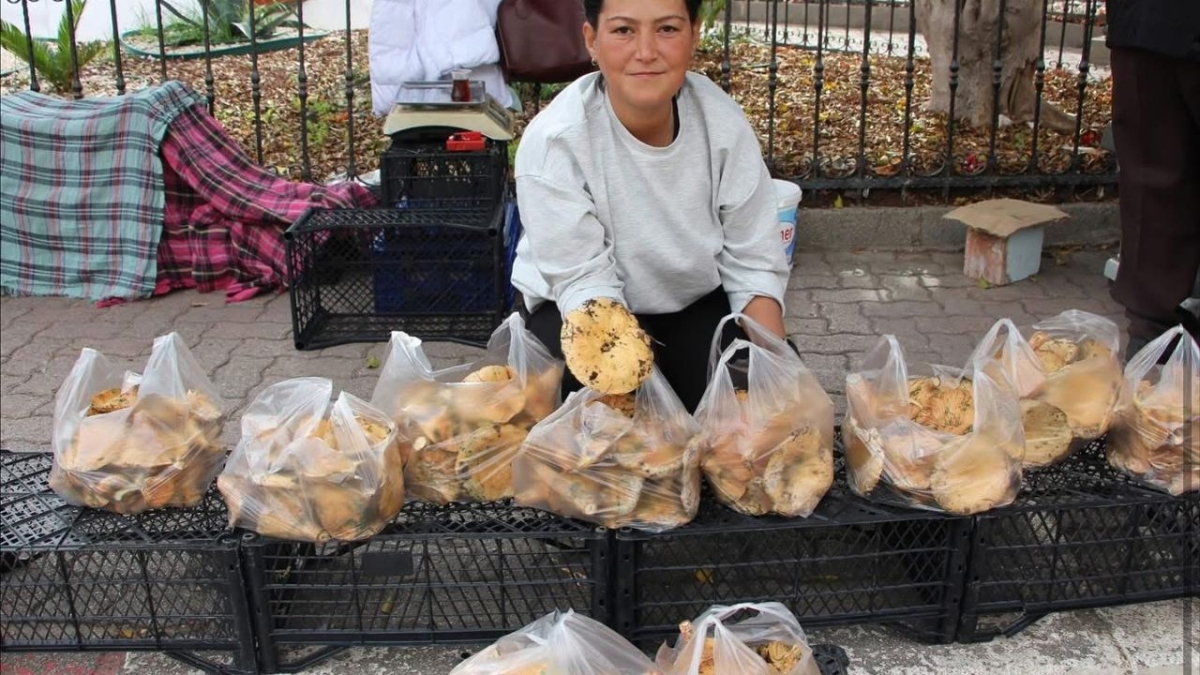 Ormandan topladığı mantarları ilçe meydanında satan Osman Günay, “Bizim buralarda ‘Çıntar’ diyoruz. Kendi emeğimizle topluyoruz, satıp evimize ekmek götürüyoruz. Şu sıralar kilosu 350-450 lira arasında değişiyor” dedi.