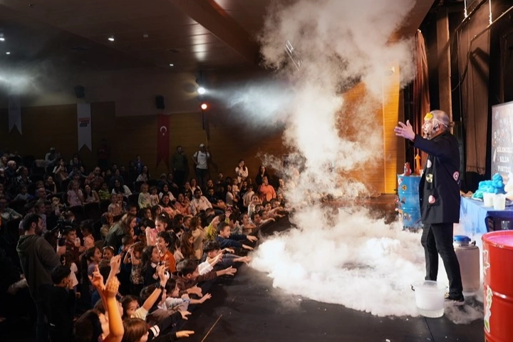 Çocukların ve velilerin büyük ilgi gösterdiği gösteride, Bilim Parkı’nın sunduğu eğlenceli ve birbirinden ilginç bilimsel deneyler uygulamalı olarak gösterildi.