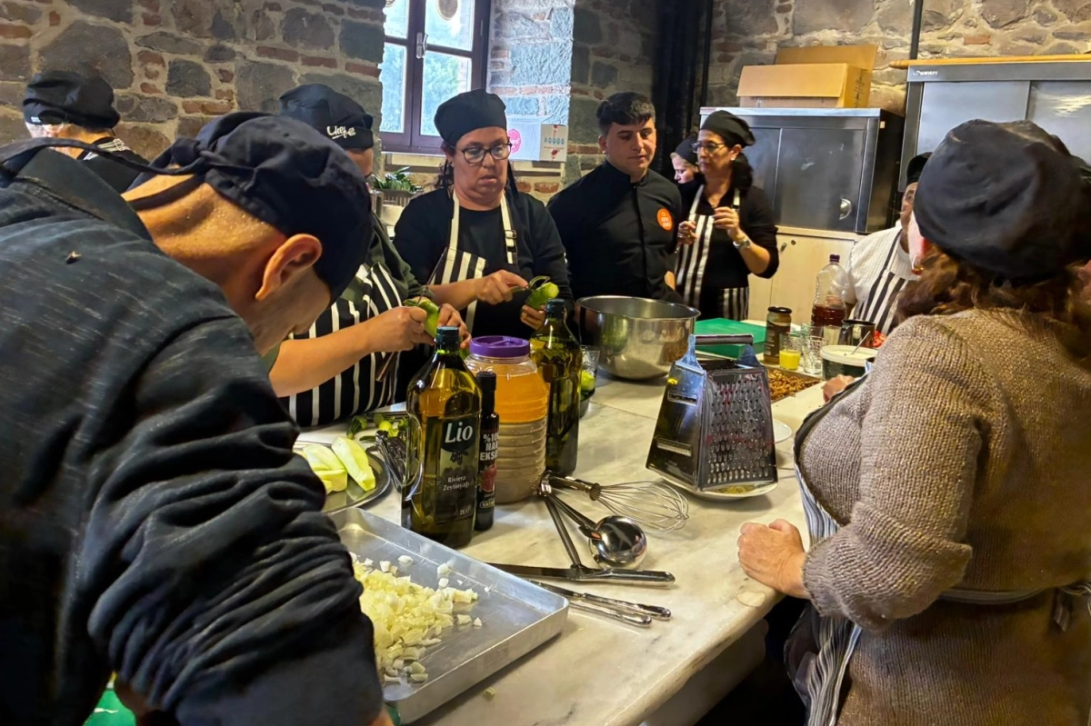 İZMİR (İGFA) - İzmir Büyükşehir Belediyesi Meslek Fabrikası’nın sağır ve işitme engelli bireylere yönelik pastacı çıraklığı kursundan mezun olan kursiyerler, ünlü şef Rıfat Yurttaş ile keyifli bir atölyede bir araya geldi. Çeşme’de restoranı bulunan ve sosyal medyada paylaştığı tariflerle geniş bir takipçi kitlesine ulaşan Yurttaş, kursiyerlerle birlikte Ege mutfağının karakteristik meze ve zeytinyağlılarını hazırladı.