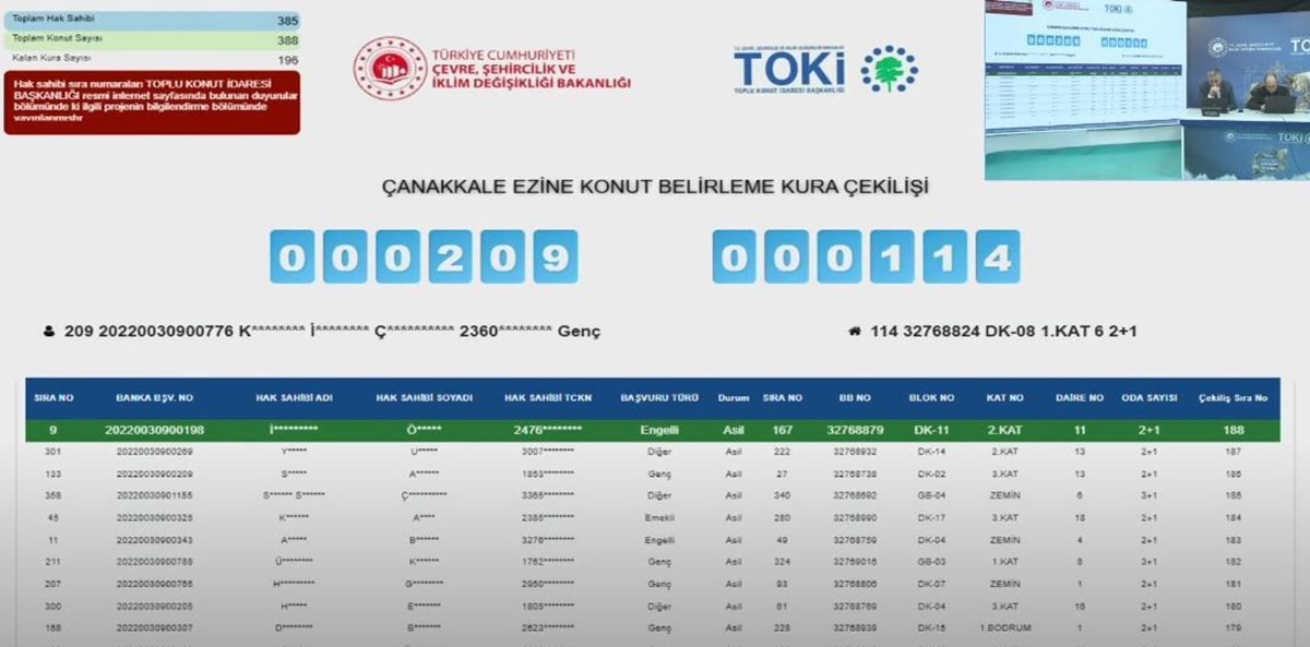 TOKİ Ezine kura çekiliş sonuçları noter onayından sonra akşam saatlerinde TOKİ'nin resmi internet sayfasında ve e-Devlet sistemi üzerinden görüntülenebilecek.