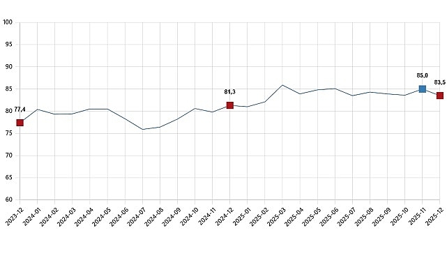 Türkiye İstatistik Kurumu ve Türkiye Cumhuriyet Merkez Bankası işbirliği ile yürütülen tüketici eğilim anketi sonuçlarından hesaplanan tüketici güven endeksi, Kasım ayında 85,0 iken Aralık ayında %1,8 oranında azalarak 83,5 oldu.