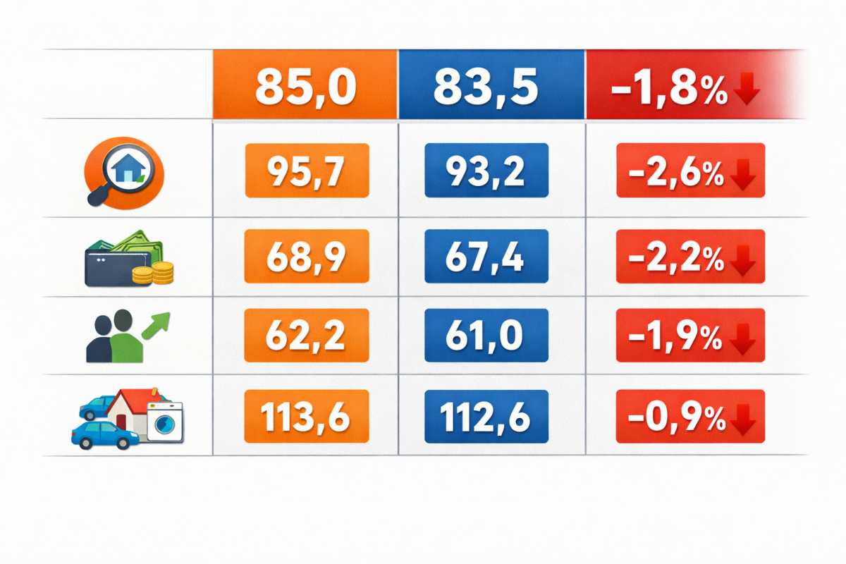 Türkiye İstatistik Kurumu ve Türkiye Cumhuriyet Merkez Bankası işbirliği ile yürütülen tüketici eğilim anketi sonuçlarından hesaplanan tüketici güven endeksi, Kasım ayında 85,0 iken Aralık ayında yüzde 1,8 oranında azalarak 83,5 oldu.