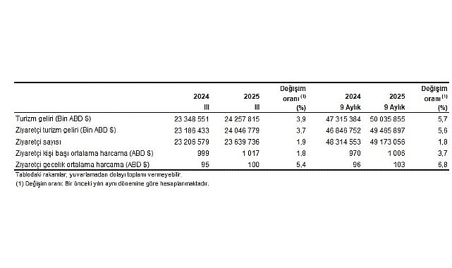Turizm geliri ve ziyaretçi sayısı, III. Çeyrek: Temmuz-Eylül, 2025